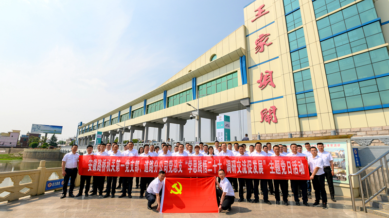 在調(diào)研交流環(huán)節(jié),全體人員先后參觀了項(xiàng)目預(yù)制梁場、阜南南互通施工現(xiàn)場,實(shí)地查看了項(xiàng)目標(biāo)準(zhǔn)化建設(shè)、安全文明施工和技術(shù)工藝運(yùn)用情況,并在項(xiàng)目會(huì)議室圍繞推動(dòng)黨建生產(chǎn)深度融合、加強(qiáng)人才隊(duì)伍建設(shè)和深化項(xiàng)目基礎(chǔ)管理等方面開展了座談交流。在參觀踐學(xué)環(huán)節(jié),全體人員來到被稱為“千里淮河第一閘”的王家壩閘,重溫習(xí)近平總書記考察安徽重要講話指示精神。在講解員的帶領(lǐng)下,大家通過觀看《王家壩紀(jì)錄片》和參觀王家壩抗洪紀(jì)念館內(nèi)的7個(gè)展廳,全面了解蒙洼群眾的抗洪歷史,深入領(lǐng)會(huì)王家壩精神的豐富內(nèi)涵。