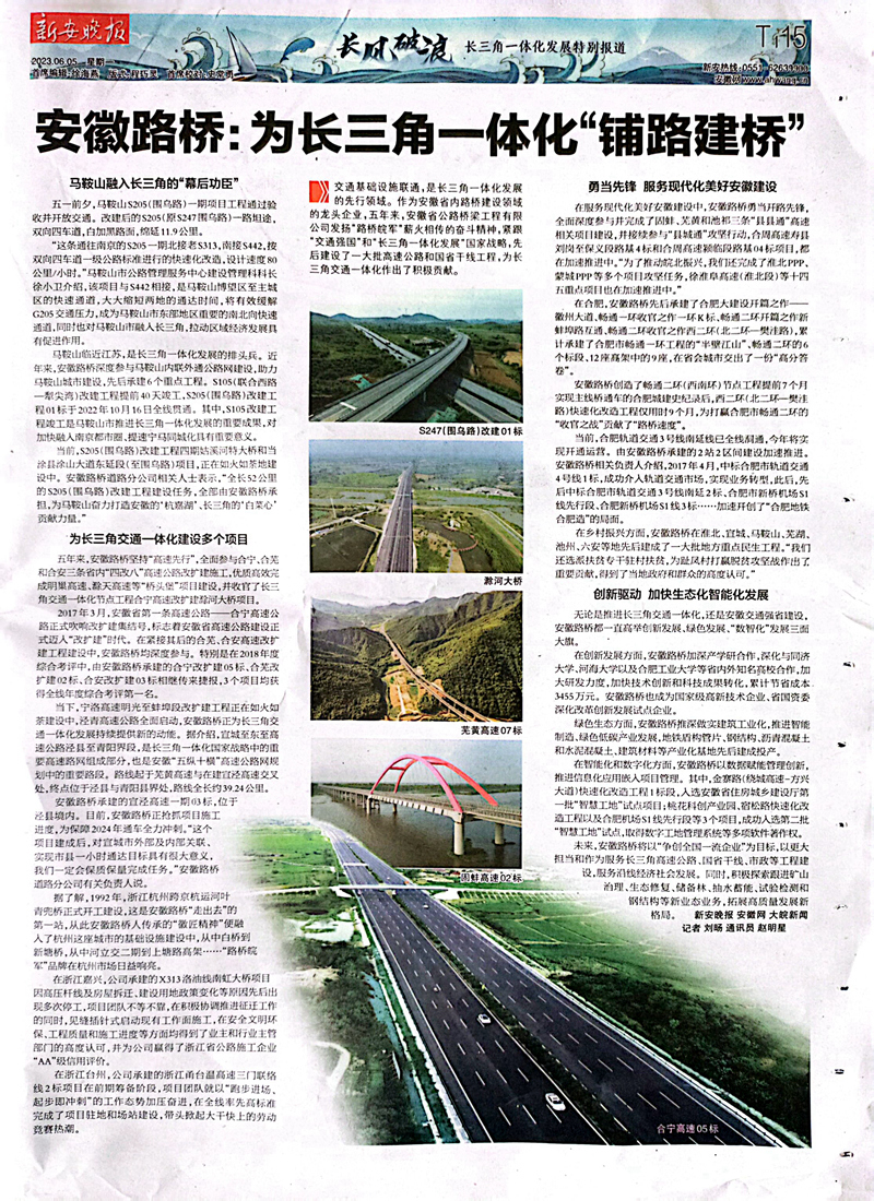 【名媒聚焦】新安晚報(bào):安徽路橋——為長(zhǎng)三角一體化“鋪路建橋”