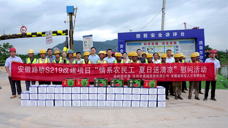 7月7日下午,共青團(tuán)池州市委書記寧睿到公司承建的S219青陽改建項目開展團(tuán)的十九大精神宣講,并開展“送清涼”慰問活動。