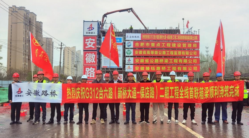 項目堅持以實干出成績,向時間要效益,以“開局即決戰(zhàn),起步即沖刺”的姿態(tài),跑出施工加速度。首根樁基開鉆、首根墩柱澆筑、首座承臺澆筑、首聯(lián)現(xiàn)澆箱梁澆筑……項目工期以及形象進度始終領(lǐng)跑全線。建設(shè)過程中,合肥新聞聯(lián)播以《安徽路橋G312:無懼“烤”驗 用汗水筑就城市之美》為題關(guān)注項目“高溫下的堅守”,中安在線、合肥日報、合肥晚報等主流媒體也高頻聚焦項目建設(shè)進展。
