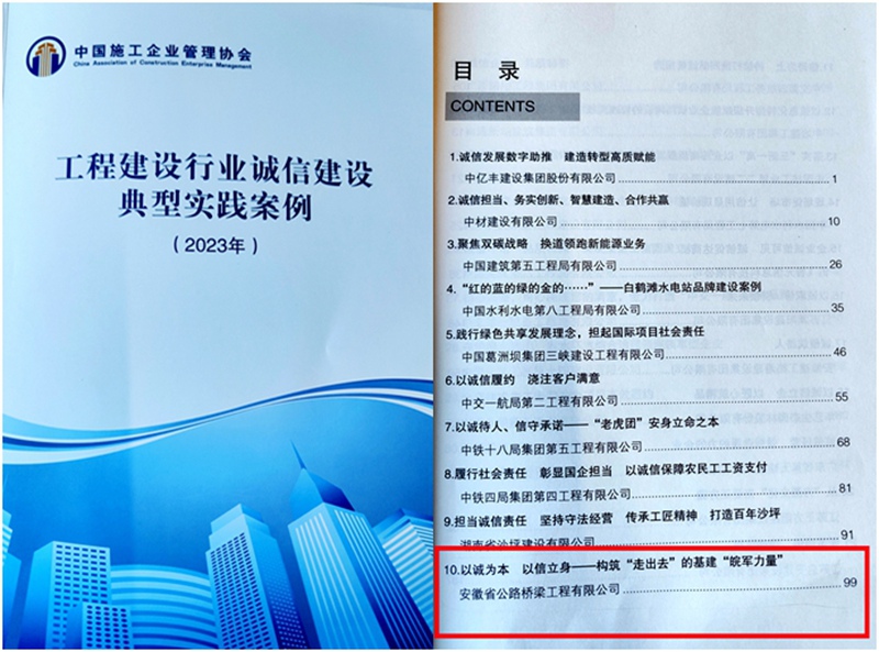 近日,從中國施工企業(yè)管理協(xié)會傳來喜訊,公司入選“2023年工程建設(shè)行業(yè)誠信建設(shè)典型實(shí)踐案例”。