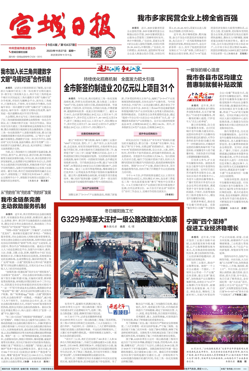 【名媒聚焦】宣城日?qǐng)?bào):冬日暖陽(yáng)施工忙 G329孫埠至大汪村一級(jí)公路改建如火如荼