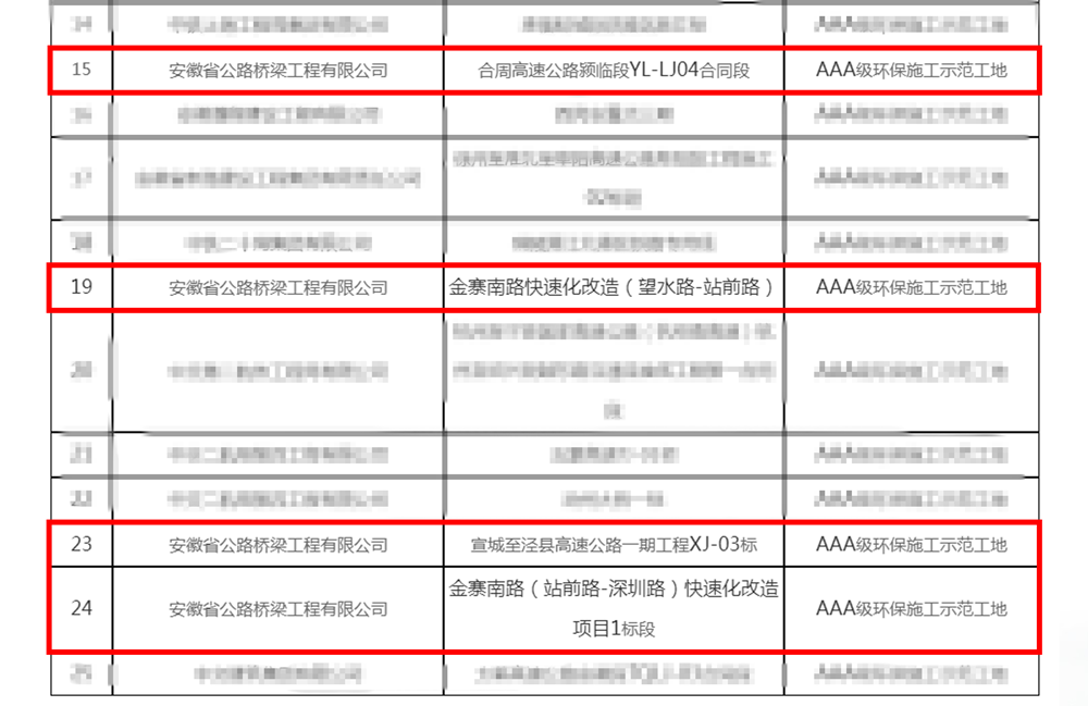 公司多個(gè)重點(diǎn)項(xiàng)目榮獲安徽省“AAA級(jí)環(huán)保施工示范工地”稱(chēng)號(hào)