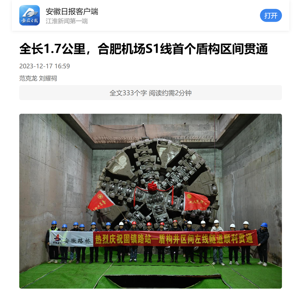近日,公司承建的合肥新橋機(jī)場(chǎng)S1線固鎮(zhèn)路站至合肥西站盾構(gòu)井區(qū)間左線隧道順利貫通。作為S1線首個(gè)實(shí)現(xiàn)貫通的區(qū)間隧道,受到人民網(wǎng)、安徽日?qǐng)?bào)、大皖新聞等多家主流媒體關(guān)注報(bào)道。