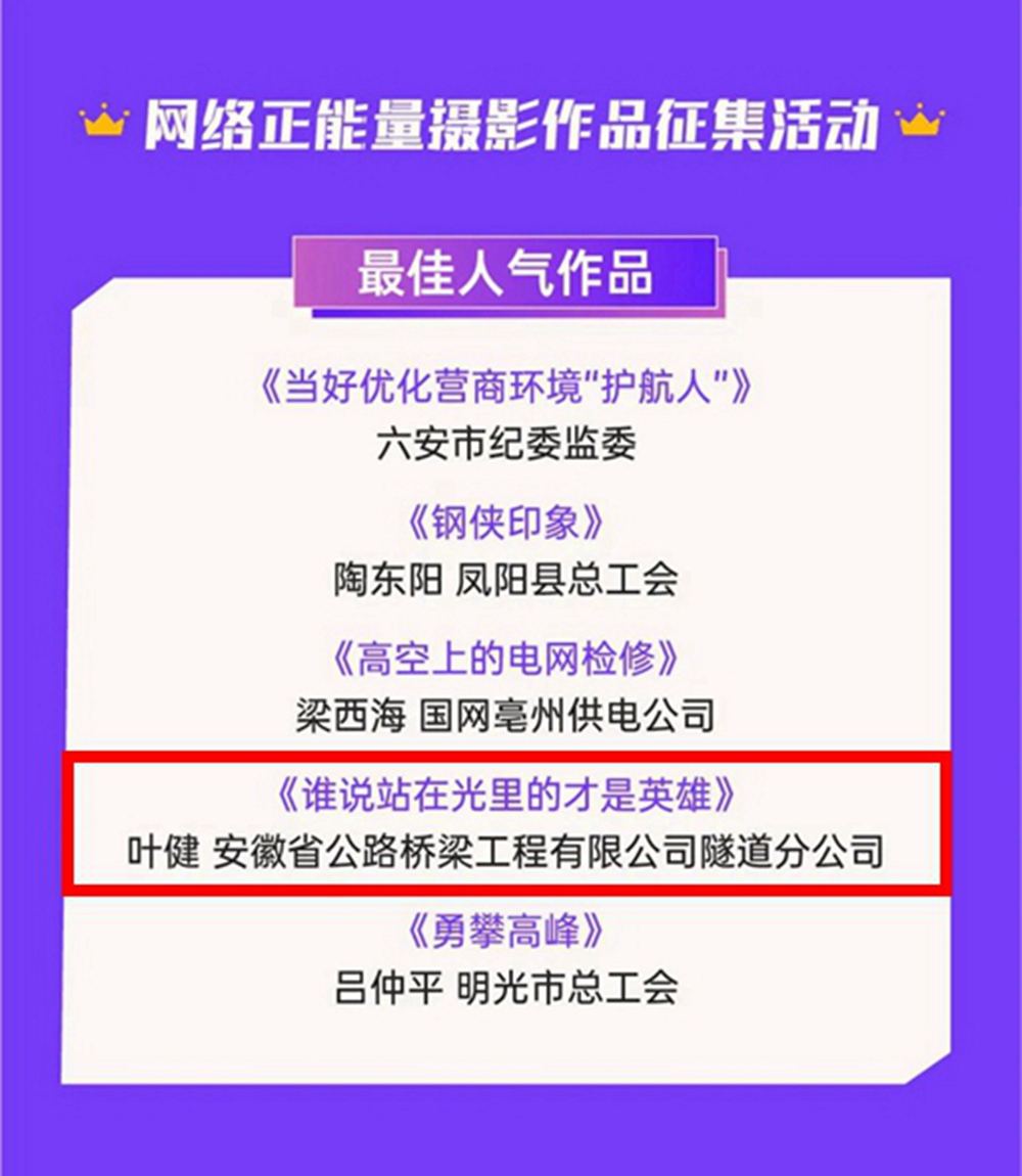 近日,安徽省總工會、省委網(wǎng)信辦聯(lián)合開展的“網(wǎng)聚職工正能量 團(tuán)結(jié)奮斗新征程”主題活動優(yōu)秀獲獎名單公布,在文章征集、攝影作品征集、誦讀作品征集活動中,公司報送的多個作品獲獎。公司工會被安徽省總工會、省委網(wǎng)信辦聯(lián)合授予2023年全省工會“好網(wǎng)民”主題活動“優(yōu)秀組織單位”。