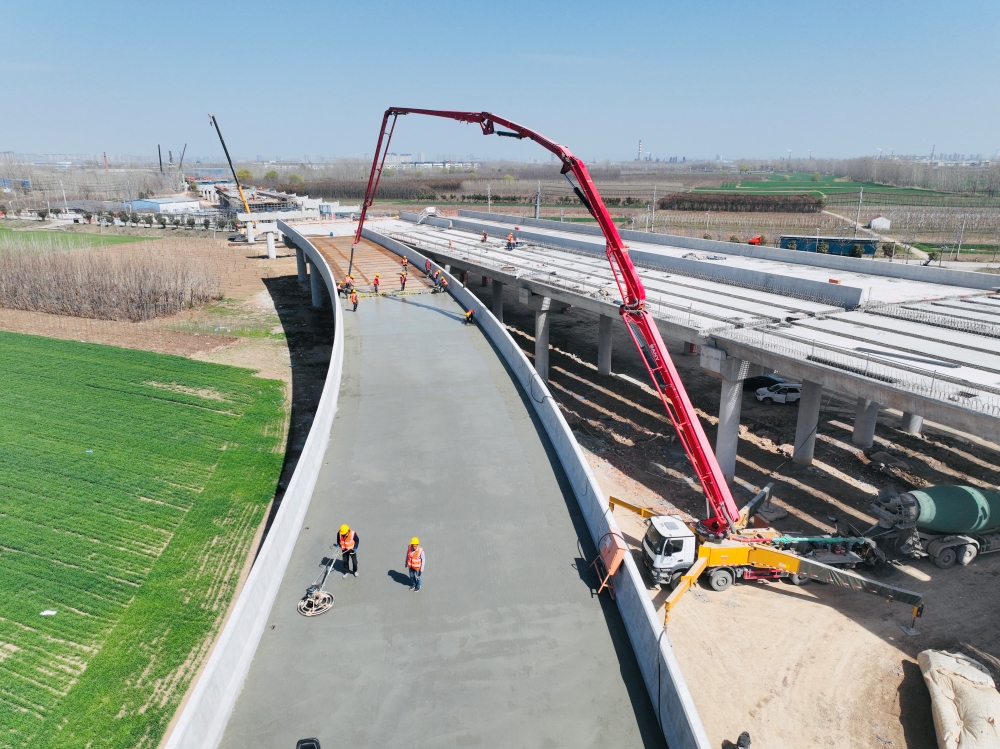“施工過程中,我們嚴把原材料質量、橋面清理、鋼筋網片鋪設、混凝土澆筑等各道工序,攤鋪后對混凝土表面進行二次收面,及時覆蓋土工布并進行灑水養(yǎng)生,使橋面達到內實外美效果?!敝苌垸i說,全線橋面鋪裝總計88聯(lián),橋面鋪裝首件工程的順利澆筑,為后續(xù)橋面施工提供了技術支撐,截至3月底已累計完成10跨。