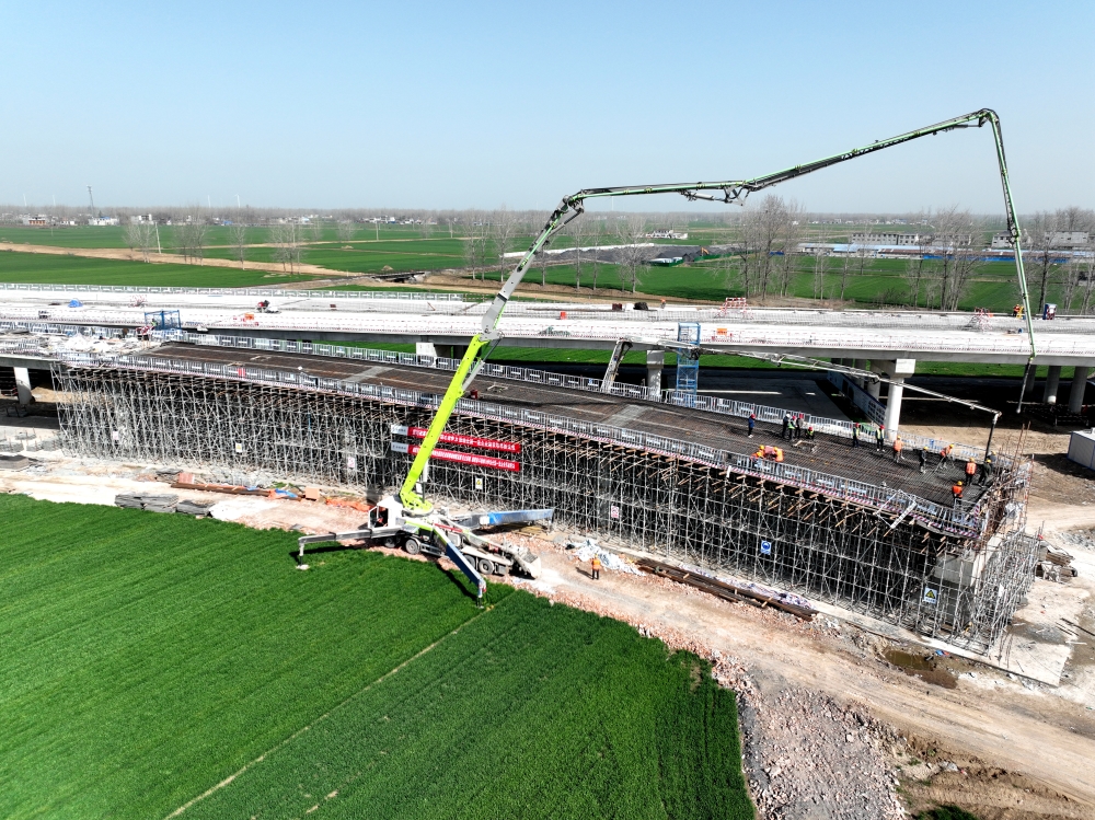 2024年是項(xiàng)目的收官之年,面對(duì)施工點(diǎn)多面廣、地方涉路導(dǎo)改等復(fù)雜問題,該項(xiàng)目倒排時(shí)間表,掛出作戰(zhàn)圖,摸清實(shí)情,找準(zhǔn)原因,及時(shí)解決難點(diǎn)、堵點(diǎn)問題,實(shí)現(xiàn)了多個(gè)重要節(jié)點(diǎn)突破。一季度以來,先后完成現(xiàn)澆箱梁澆筑,全線首個(gè)路基斷面交驗(yàn),武家河雙向水泥土攪拌樁施工,為徐淮阜高速項(xiàng)目建設(shè)再添新績。