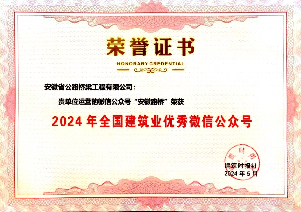 公司微信公眾號榮獲“2024年全國建筑業(yè)優(yōu)秀微信公眾號”