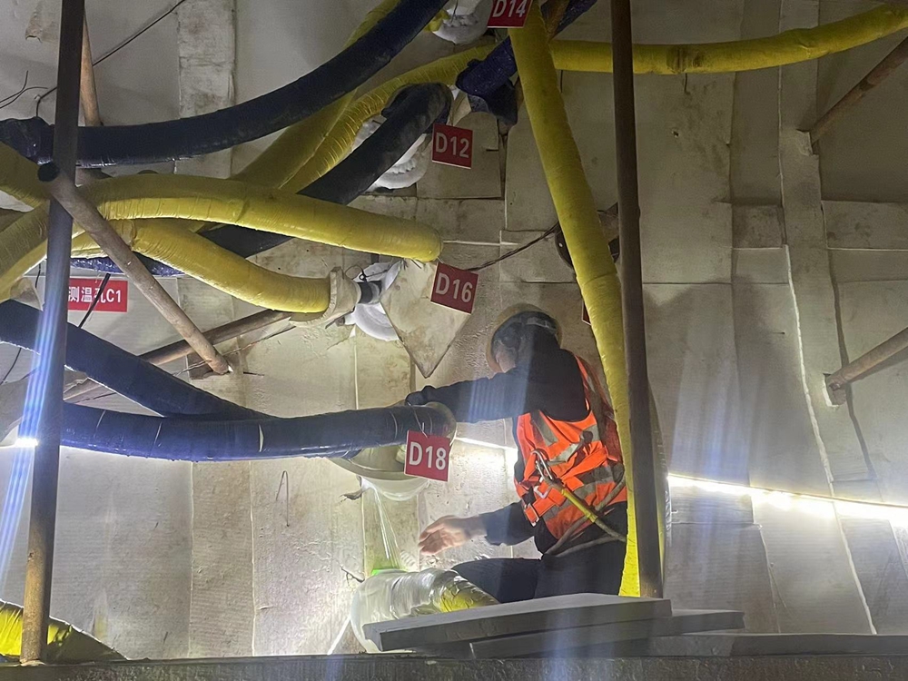 “形象地說(shuō),冷凍系統(tǒng)就好似一個(gè)不停機(jī)的冰箱,冷凍鹽水始終在-30℃左右把土體冷凍成堅(jiān)硬的‘冰棍’,增加其強(qiáng)度和穩(wěn)定性。同時(shí)這種人工制冷技術(shù)適應(yīng)面廣、安全可靠、污染性小,而且完全不用抽排地下水,一定程度上也減少了地下水資源的浪費(fèi)”,項(xiàng)目負(fù)責(zé)人宋廣輝介紹。