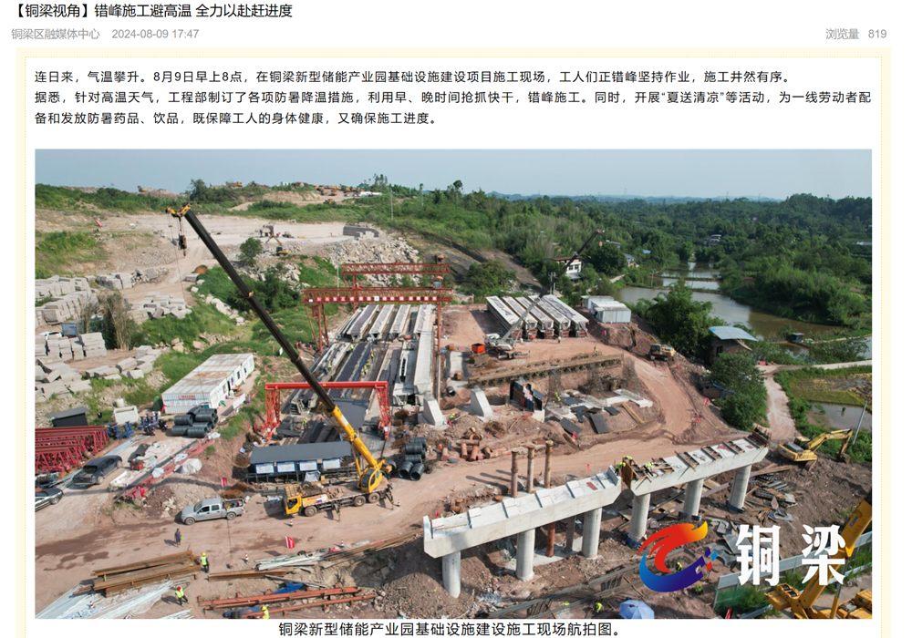 8月9日,重慶銅梁區(qū)融媒體中心聚焦公司承建的重慶銅梁項目建設,對項目戰(zhàn)高溫、斗酷暑,持續(xù)推進施工進度,加快配套路網建設,蓄積產業(yè)發(fā)展新動能進行專題報道。
