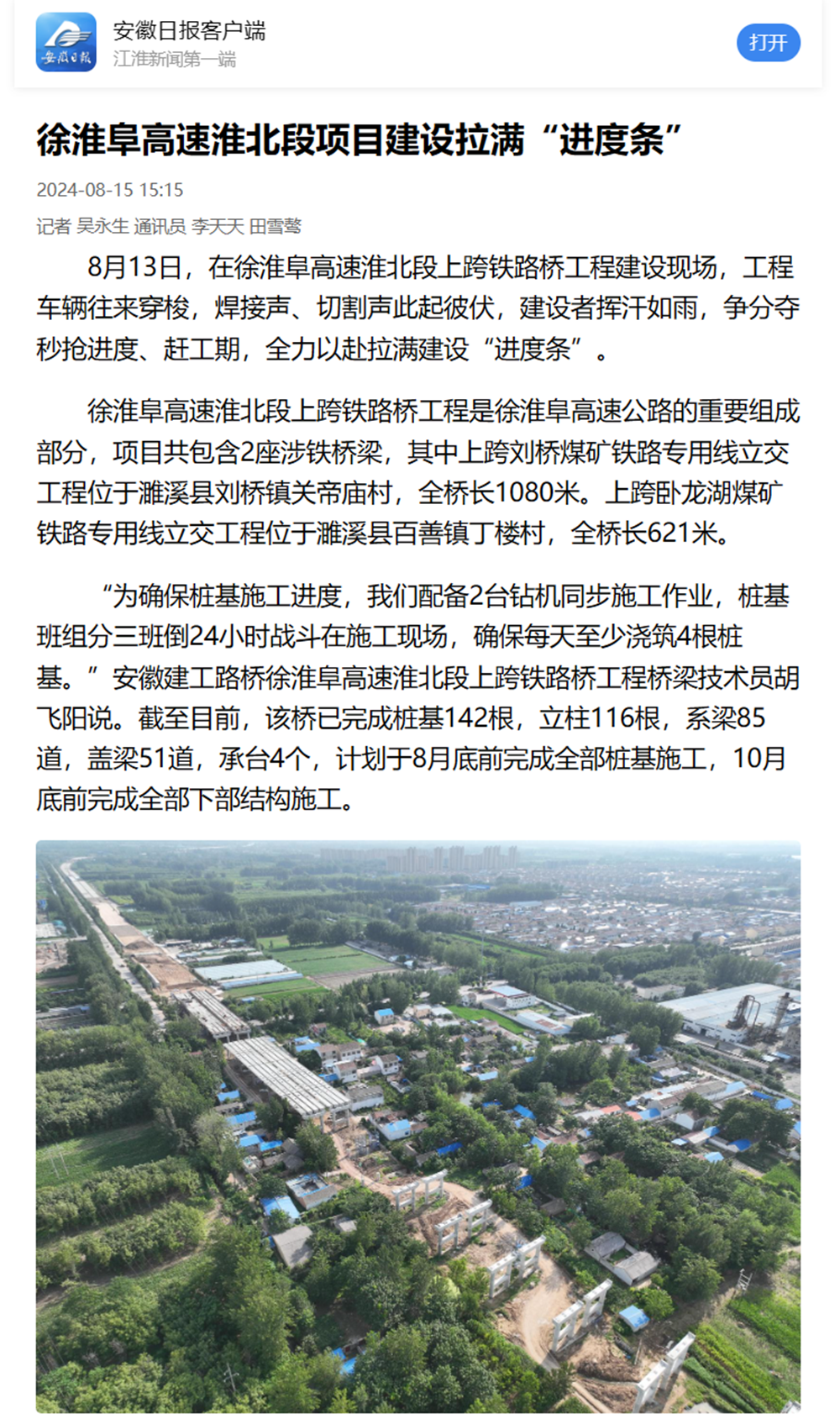 【名媒聚焦】安徽日報(bào)客戶端聚焦徐淮阜高速淮北段上跨鐵路橋工程建設(shè)
