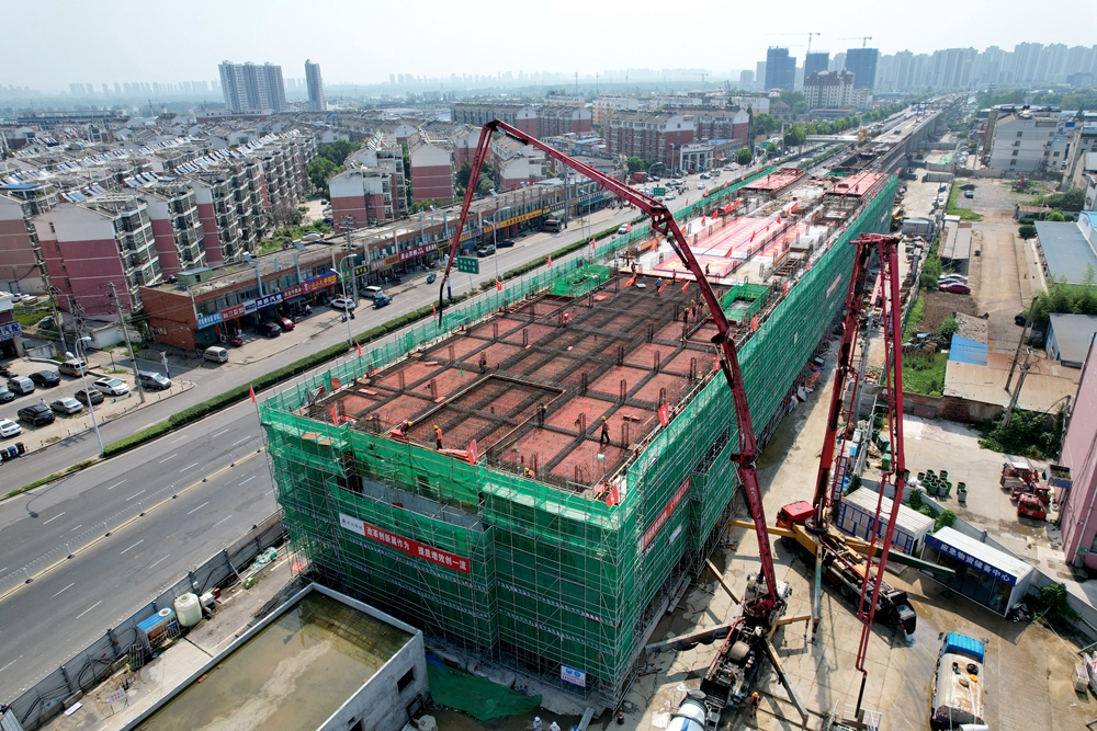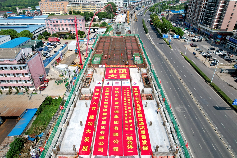 8月23日,隨著站臺(tái)層最后一段頂板混凝土澆筑完成,合肥新橋機(jī)場(chǎng)S1線崗集站主體結(jié)構(gòu)順利封頂,標(biāo)志著車(chē)站主體結(jié)構(gòu)完工,站點(diǎn)建設(shè)邁入附屬結(jié)構(gòu)施工新階段。
