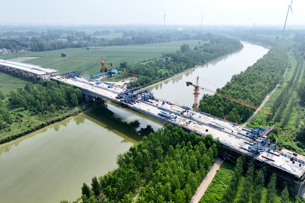 沱河特大橋是徐淮阜高速淮北段項目重點控制性工程之一,其主橋自去年11月初開始施工,于今年8月21日晚11時許實現(xiàn)右幅合龍。目前,項目施工方安徽建工路橋正全力沖刺9月底前實現(xiàn)全橋合龍的目標(biāo)。
