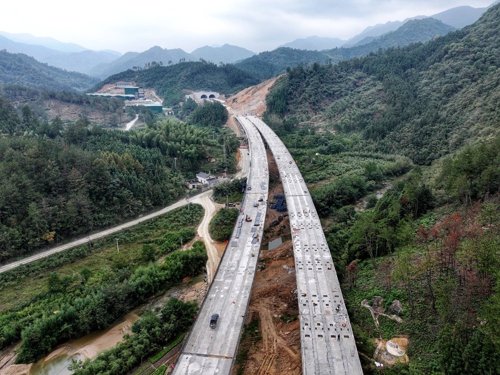 “項目建設(shè)過程中最大的挑戰(zhàn)就是皖南山區(qū)復(fù)雜的地形地貌?!睕芮喔咚俾坊访鏄思夹g(shù)負責(zé)人袁寶軍告訴記者,項目團隊通過科學(xué)規(guī)劃、精準施策,對施工現(xiàn)場進行了全面細致的勘查與分析,制定了詳細的施工計劃和進度安排。在施工過程中,團隊根據(jù)實際情況及時調(diào)整方案,優(yōu)化資源配置,確保每一道工序都能高效有序推進。目前,項目的控制性工程鳳形山隧道、合溪隧道均已實現(xiàn)雙線貫通,碧山隧道掘進完成83.5%、梁板架設(shè)完成65%,路基施工完成80%左右。按照計劃,路基主體施工將在明年3月份完成。