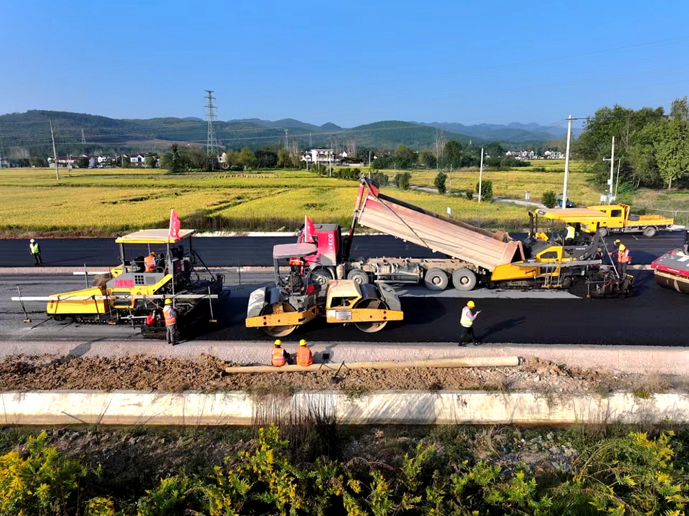 “目前項(xiàng)目已進(jìn)入全面施工階段。項(xiàng)目控制性工程水東四號(hào)橋施工已經(jīng)基本完成,水穩(wěn)已完成8.3公里施工,瀝青已完成4.7公里施工。為了保證工程進(jìn)度,項(xiàng)目部正牢牢抓住近期晴好天氣的施工‘黃金期’,力爭(zhēng)保質(zhì)保量按期完成建設(shè)任務(wù)。”項(xiàng)目部副經(jīng)理馬佳杰說(shuō)。