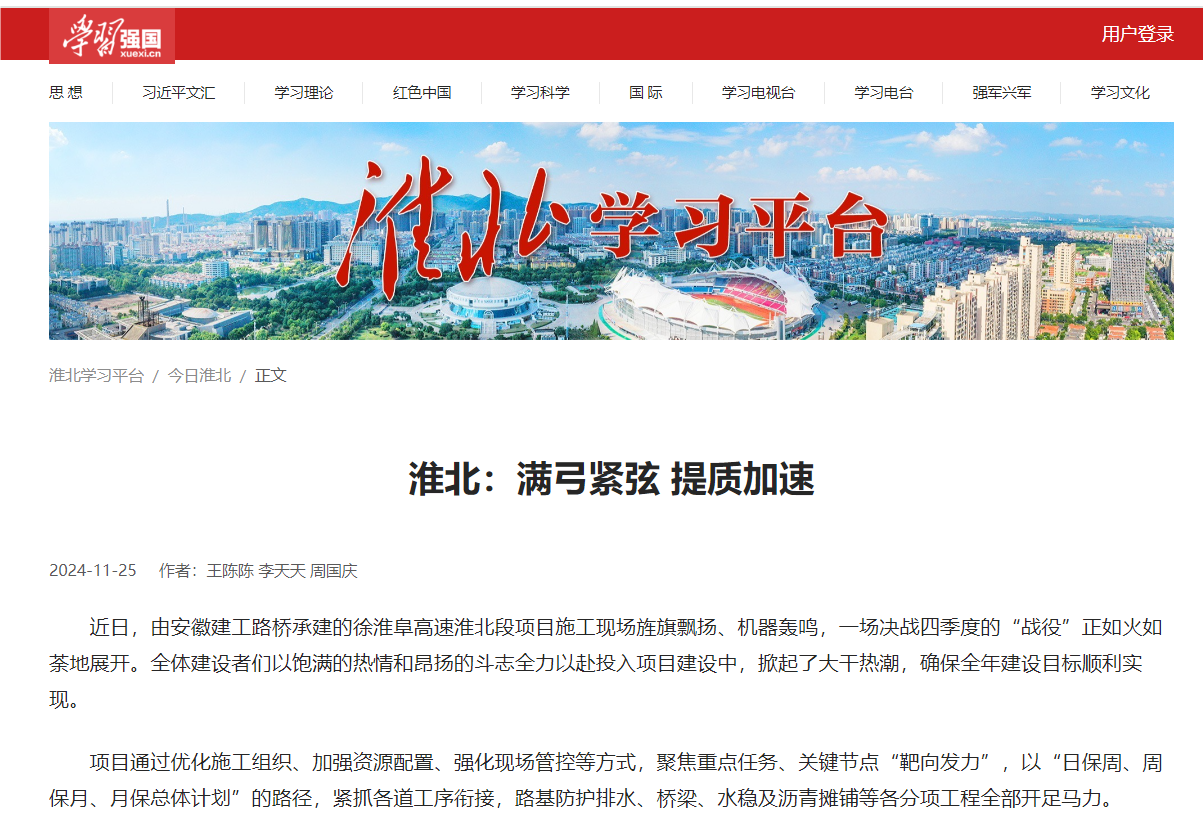 【名媒聚焦】安徽日報客戶端、學(xué)習(xí)強國、淮北日報:決戰(zhàn)年終!徐淮阜高速建設(shè)加速沖刺