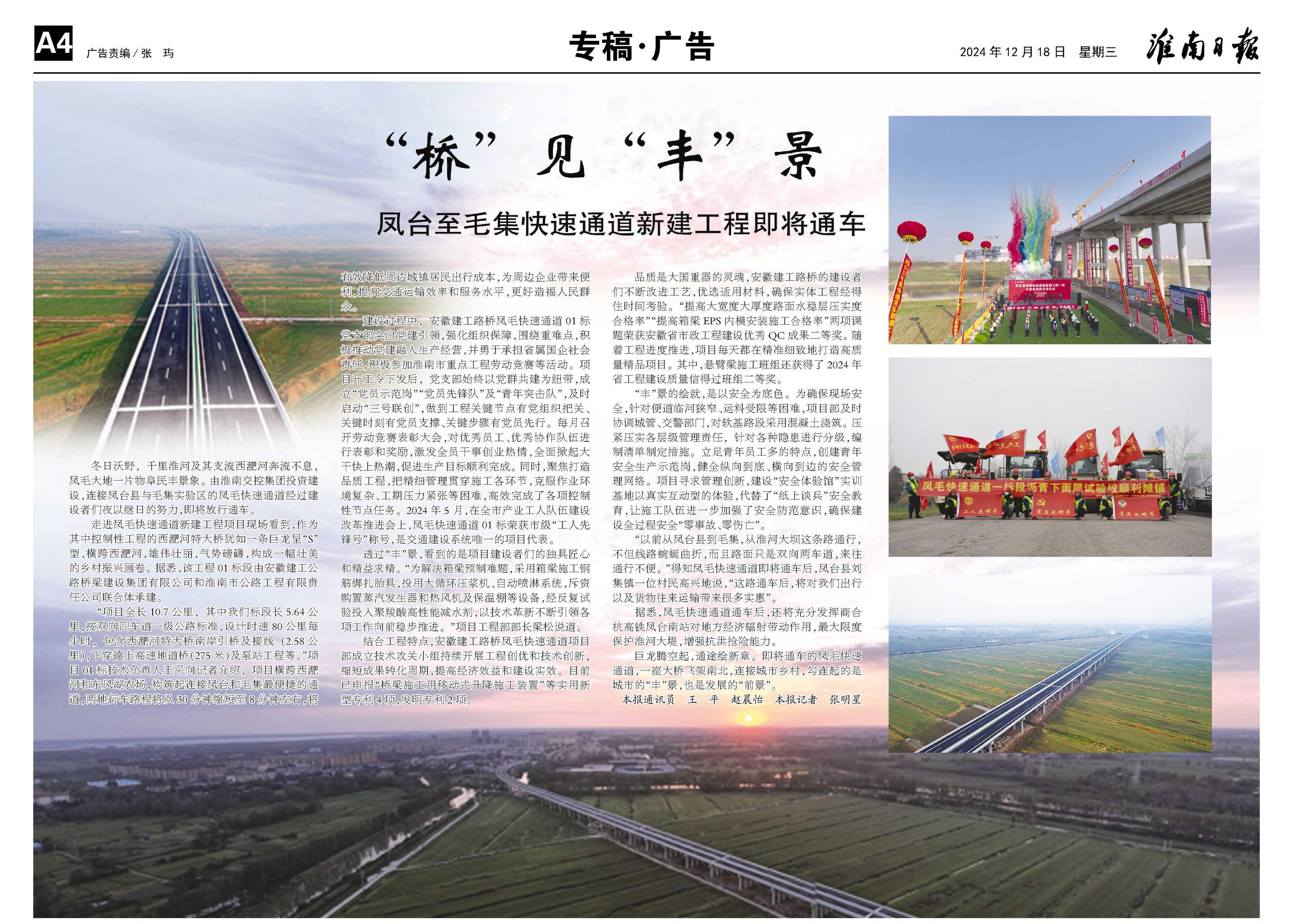 【名媒聚焦】淮南日報:“橋”見“豐”景——鳳臺至毛集快速通道新建工程即將通車