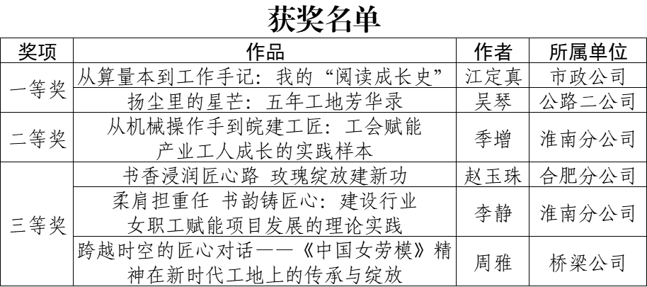 近日,集團(tuán)為慶祝中華全國總工會成立100周年,組織開展了工會工作主題征文活動。公司報送的6篇文章從百余篇作品中脫穎而出,取得優(yōu)異成績,榮獲一等獎2項、二等獎1項、三等獎3項。