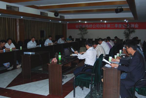 5月8日下午18:00——20:30,公司在績溪賓館四樓會議室召開了2009年第二季度安全例會。會議由公司總經(jīng)理汪衛(wèi)東主持。公司安委會成員、直屬單位負責(zé)人、項目經(jīng)理及專職安全員共48人參加了此次會議。