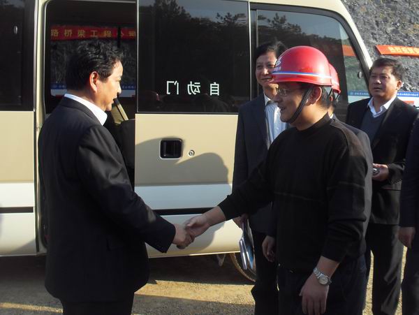 黃省長首先在施工現(xiàn)場聽取了績黃高速項(xiàng)目辦主任方昱對于工程建設(shè)情況的匯報(bào)。聽完匯報(bào)后,黃省長對公司和項(xiàng)目部的工作給予充分肯定和高度評價(jià)。他說,“省路橋公司是本省施工的龍頭企業(yè),代表本省的形象,希望你們再接再厲,繼續(xù)做好規(guī)范化施工,高效管理,抓住當(dāng)前機(jī)遇,努力打造優(yōu)質(zhì)工程,不斷提升企業(yè)形象,開辟新的市場,繼續(xù)做大做強(qiáng)。”汪總表態(tài),“省路橋公司在黃省長的關(guān)懷下,近年來企業(yè)改制改革方面取得了一定成效,企業(yè)取得了巨大發(fā)展,我們將繼續(xù)做好施工規(guī)范化、精細(xì)化管理,在省領(lǐng)導(dǎo)的關(guān)心與支持下,我們一定會(huì)抓住機(jī)遇、迎接挑戰(zhàn),把企業(yè)做大做強(qiáng)”。