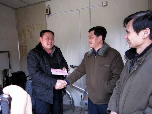 集團公司副總經(jīng)理戴良軍一行慰問公司困難職工 發(fā)布時間:2010年02月04日 來源:工會 發(fā)布人: 作者:胡運春 瀏覽:5435次 2月3日,在這新春佳節(jié)來臨之際,集團公司副總經(jīng)理戴良軍、黨委工作部主任吳曉伍、人力資源部副經(jīng)理朱金蓉一行在公司黨委書記陳光磊等同志的陪同下,先后對四分公司特困職工許來柱和二分公司困難黨員施靜進行了走訪慰問,給他們送去了慰問金,并送上新春的祝福,把黨組織的關(guān)懷、企業(yè)的溫暖送到了他們的家中。