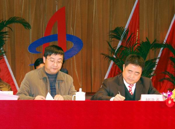 集團(tuán)公司董事長、總經(jīng)理胡運(yùn)成與公司總經(jīng)理汪衛(wèi)東簽訂2010年生產(chǎn)、經(jīng)營目標(biāo)責(zé)任書