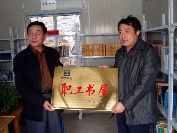 劉主席首先來到項目部職工書屋,察看了書屋的軟硬件設(shè)施及借閱情況,并聽取了項目經(jīng)理江仲明關(guān)于項目施工及職工書屋創(chuàng)建情況的匯報。劉主席對書屋的建設(shè)和管理予以了肯定和贊許,并對書屋更好的發(fā)展提出了希望和要求:一、立足實際、講求實效;二、營造氛圍,大力宣傳;三、實現(xiàn)資源共享,發(fā)揮最大效益;四、總結(jié)經(jīng)驗、持續(xù)發(fā)展。邢應(yīng)梅書記還饒有興趣地翻看了圖書借閱登記表,了解職工借閱圖書情況,并對進一步完善職工書屋的建設(shè)提出了幾點建議。隨后舉行了簡短的授牌儀式,劉主席向項目經(jīng)理江仲明轉(zhuǎn)授了由安徽省總工會頒發(fā)的“職工書屋”牌匾,并代表集團工會向職工書屋贈送了各類書籍300余冊。