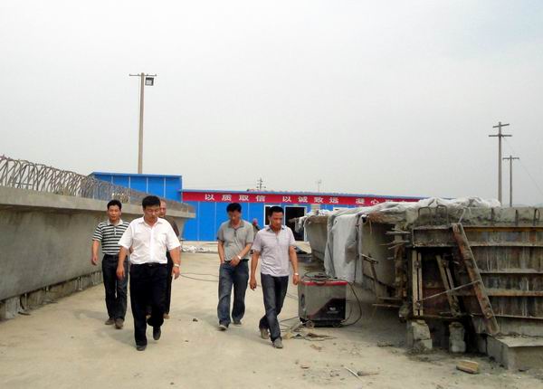 7月2日下午2點(diǎn)30分,汪總一行先來到馬鞍山東環(huán)改造項(xiàng)目指導(dǎo)工作,該項(xiàng)目經(jīng)理冷峰全程陪同。汪總一行首先頂著酷暑、披著煙塵,來到了該項(xiàng)目部的清淤現(xiàn)場、預(yù)制場和樁基現(xiàn)場,仔細(xì)耐心的查看了各項(xiàng)施工任務(wù)的進(jìn)展情況以及質(zhì)量情況。隨后,在項(xiàng)目部會(huì)議室,汪總一行又聽取了項(xiàng)目經(jīng)理冷峰關(guān)于近期該項(xiàng)目工程、試驗(yàn)、安全、財(cái)務(wù)等工作開展情況的匯報(bào)后,在肯定了該項(xiàng)目前期工作的同時(shí),也針對(duì)其中的工程質(zhì)量、安全文明等存在的問題,提出了寶貴意見。希望該項(xiàng)目能抓緊落實(shí),及時(shí)把問題解決。該項(xiàng)目經(jīng)理冷峰表示一定會(huì)按照公司的意見與要求,解決問題,提高工作水平。