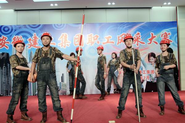 公司12名職工分別展示了三套服裝。第一套職業(yè)裝突破了傳統(tǒng)職業(yè)裝的局限,以背帶牛仔工裝褲為主,別具一格。再搭配安全帽、對講機等施工現(xiàn)場道具,將路橋的職業(yè)特性展示的淋漓盡致,在眾多參賽隊伍中獨樹一幟。第二套時裝,由六位女職工身著綴滿亮片的五彩短裙,在輕快動感的音樂下,充分展現(xiàn)了女職工的青春活力。第三套藝術(shù)裝,以晚禮服為主,四位男職工風(fēng)度翩翩,四位女職工婀娜多姿,凸顯了路橋兒女的別樣情懷。