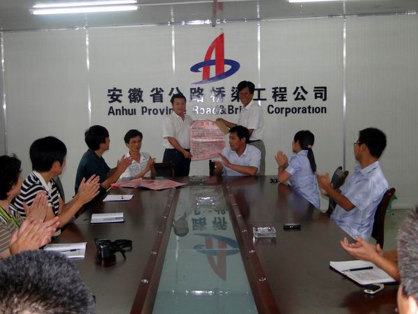 公司黨辦還為我項(xiàng)目送來了表彰先進(jìn)基層黨組織、先進(jìn)黨務(wù)工作者和先進(jìn)黨員的光榮榜,我宜巴09標(biāo)項(xiàng)目黨支部榮獲安徽建工集團(tuán)“先進(jìn)基層黨支部”稱號(hào)和“黨員先鋒號(hào)工程”的稱號(hào),邵建新同志榮獲安徽建工集團(tuán)優(yōu)秀黨務(wù)工作者稱號(hào)。