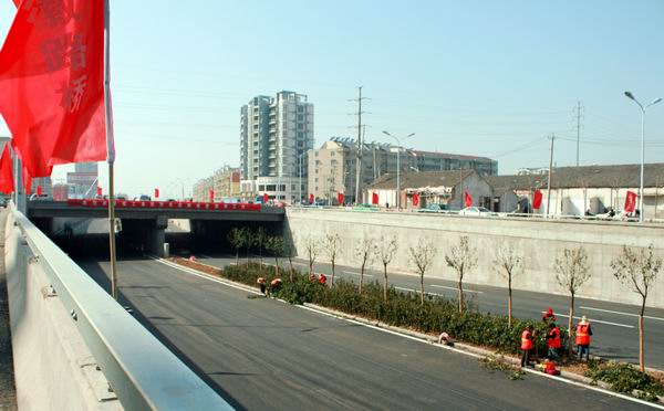 新蚌埠路與北二環(huán)路立交橋采取北二環(huán)路下穿新蚌埠路的路塹式結構,通過立交銜接,兩條路實現(xiàn)交通分流,成為北部城區(qū)的兩條快速通道。該項目自2008年9月開工以來,積極響應公司號召,發(fā)揚“團結拼搏、優(yōu)質高效”的精神,趕進度、保質量、重安全,全體員工們團結一致,艱苦奮斗,于2009年3月順利完成施工任務,比原計劃工期提前了兩個多月,深受業(yè)主和社會各界的好評。該項目在施工過程中獲市重點局通報嘉獎,榮獲了建工集團優(yōu)秀項目部、安全文明示范工地等稱號,項目經(jīng)理李建成被評為建工集團優(yōu)秀項目經(jīng)理,工程組被評為建工集團先進班組。