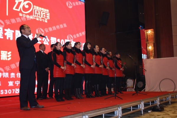 十年的汗水、十年的探索、十年的堅(jiān)守、十年的創(chuàng)新、十年鑄就的輝煌。晚會在由該公司在建項(xiàng)目宣寧路面02標(biāo)領(lǐng)唱、全體人員合唱的《明天會更好》中閉幕,這一刻,唱響的是10年來又好又快發(fā)展的頌歌;這一刻,傳遞的是安徽路橋路面人自信自強(qiáng)、團(tuán)隊(duì)協(xié)作的力量,這一刻,延續(xù)的是安徽路橋路面公司鑄就輝煌的信心。