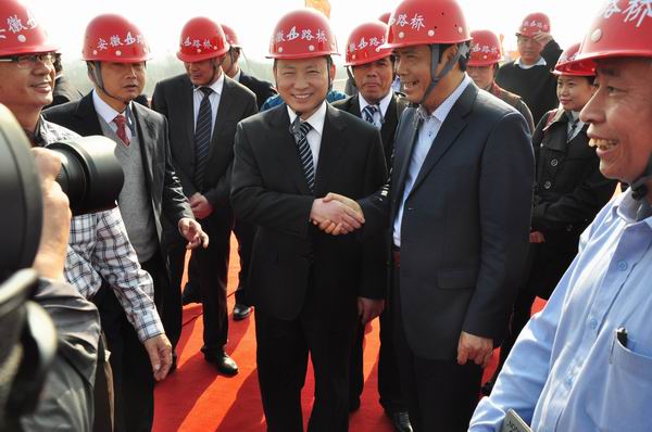 阮清平書記指出,安徽路橋公司在安徽建工的領(lǐng)導(dǎo)下不斷發(fā)展壯大。他祝愿發(fā)展起來(lái)的安徽路橋?yàn)榧瘓F(tuán)做出新的貢獻(xiàn),對(duì)本次有幸到公司考察而感到高興。