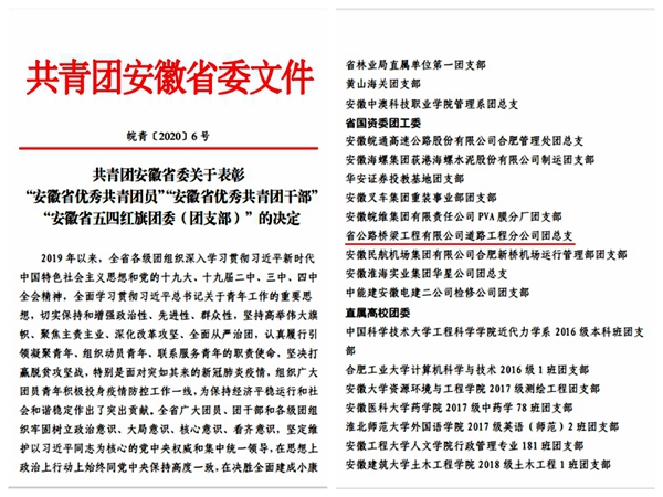 道路分公司團(tuán)總支榮獲“安徽省五四紅旗團(tuán)總支”稱號