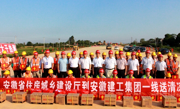 在施工現(xiàn)場,陳楊年代表安徽省住建廳向參建人員表示慰問,并為一線施工人員發(fā)放了防暑降溫慰問品。他指出,進入暑期以來,一線作業(yè)人員戰(zhàn)高溫、斗酷暑、搶工期、趕進度。希望省路橋公司要壓實安全生產(chǎn)主體責任,科學安排施工作業(yè)時間,做好防暑降溫工作,保證參建人員的施工安全;廣大工友要立足崗位,做好本職工作,牢記安全規(guī)章制度,確保身體健康和施工安全。