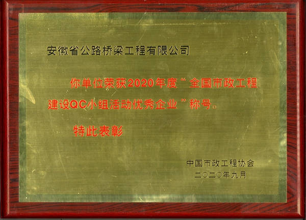 公司榮獲全國(guó)市政工程建設(shè)QC小組活動(dòng)優(yōu)秀企業(yè)