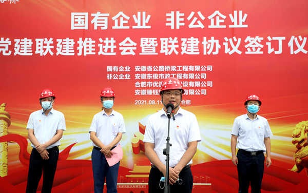 安徽東俊市政工程有限公司、合肥市優(yōu)道市政建設有限公司黨組織代表在發(fā)言中表示,將全面履行合同承諾和黨建協(xié)議內(nèi)容,在黨建聯(lián)建中汲取奮進力量。圍繞南二環(huán)項目建設,激勵引導全體黨員守初心,擔使命,帶領全體員工立足崗位提高工作效能,爭取更高質(zhì)量更高標準完成工程建設任務。