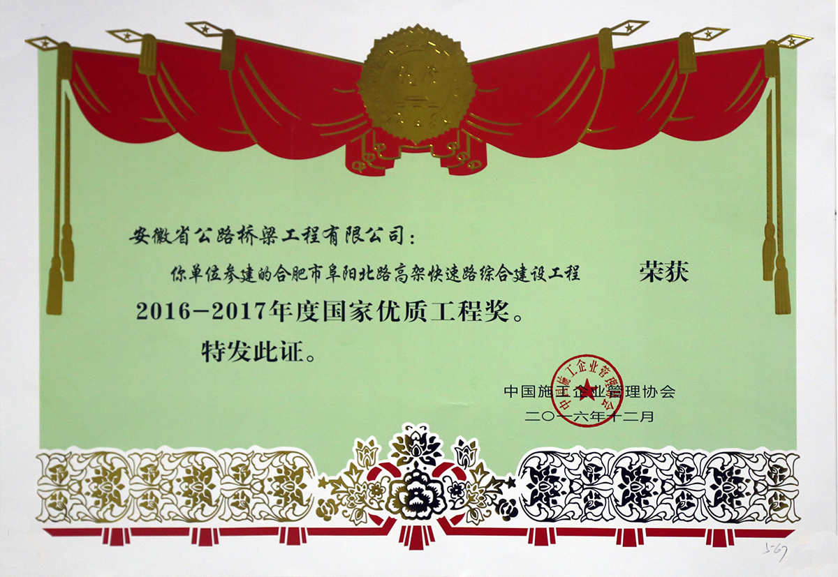合肥市一環(huán)路暢通工程J標—國家優(yōu)質工程獎