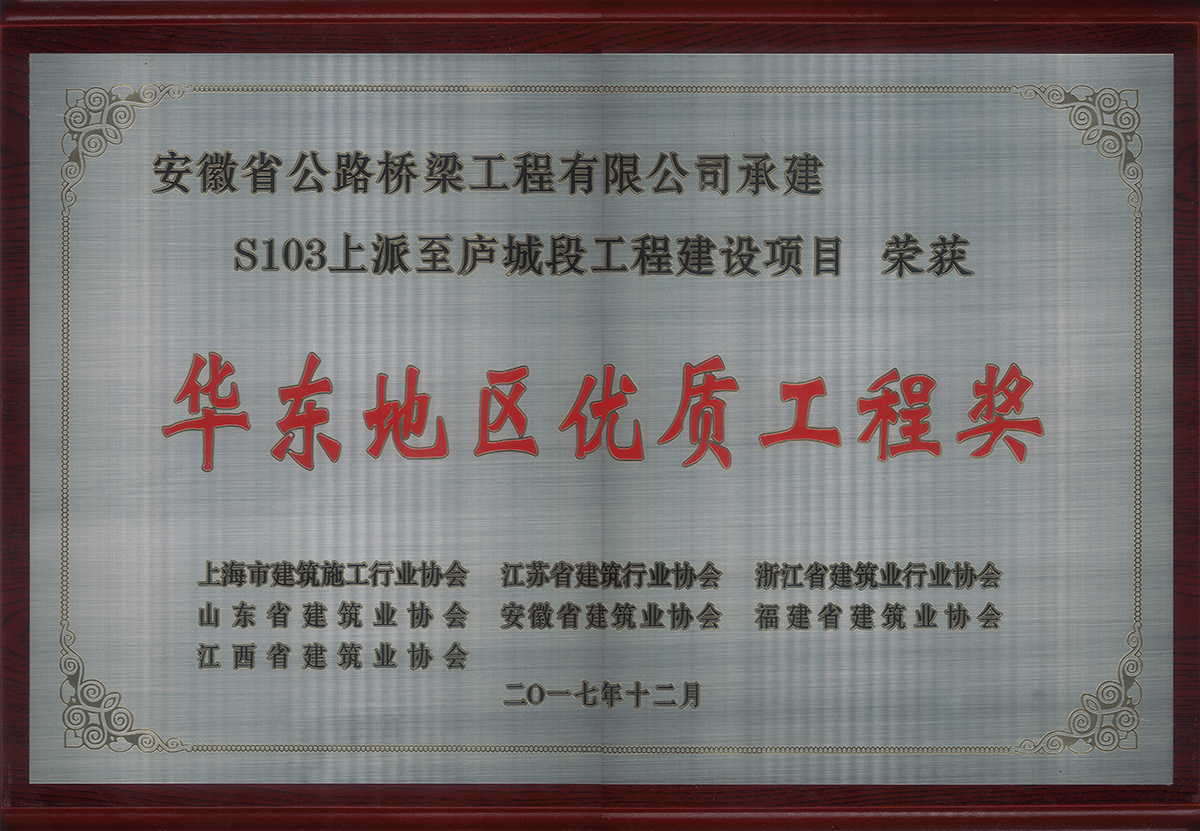 S103上派至廬城段項目-華東地區(qū)優(yōu)質工程獎